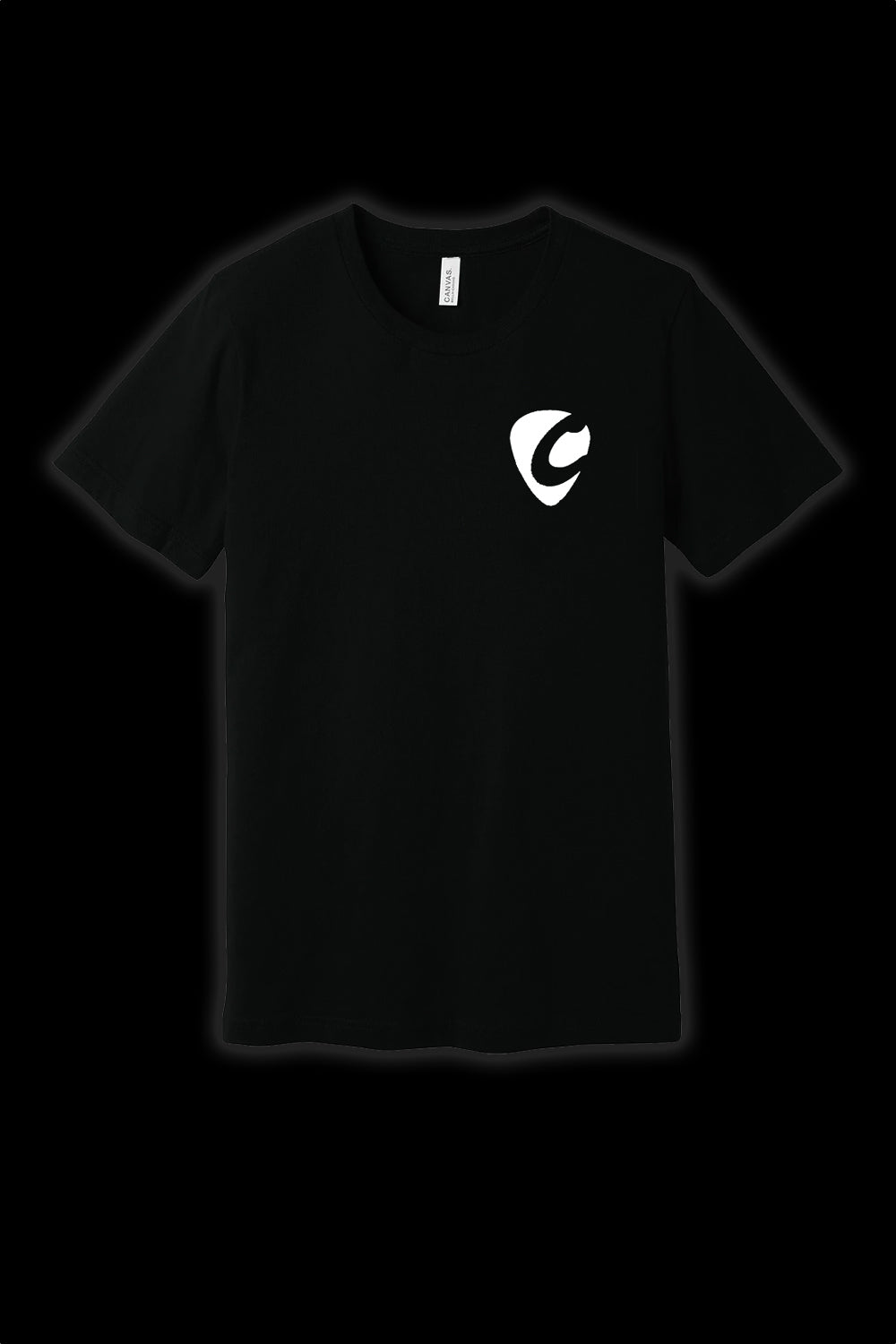Represent and look cool at the same time with this black crewneck T-shirt. 100% Cotton.