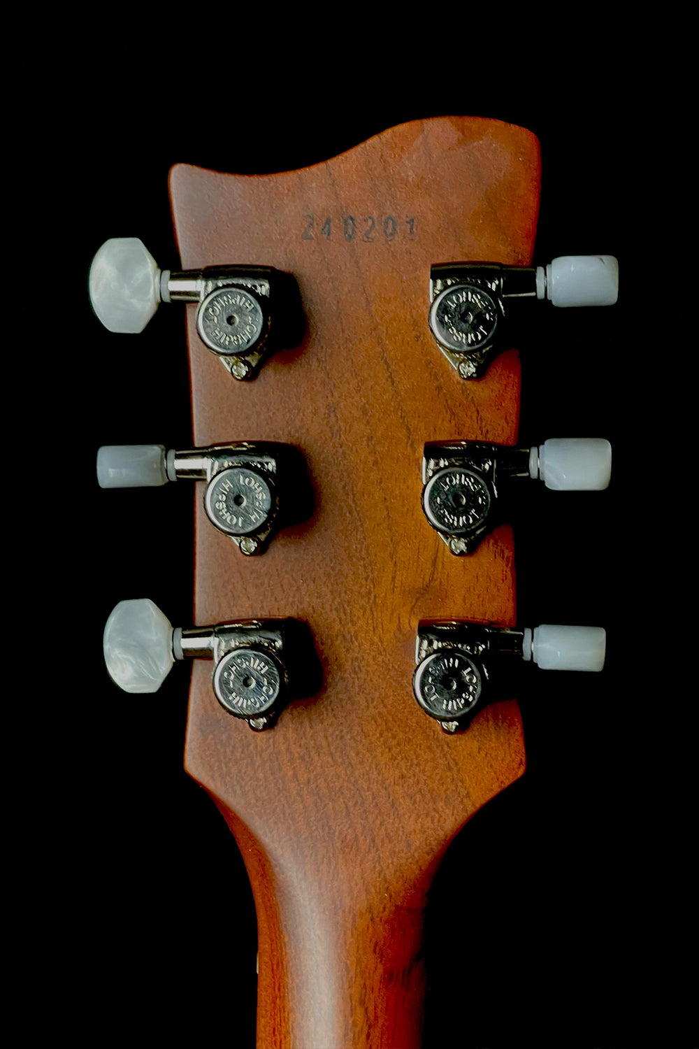 - Fretboard: Ebony with roasted maple binding, MOP dots, 22 frets